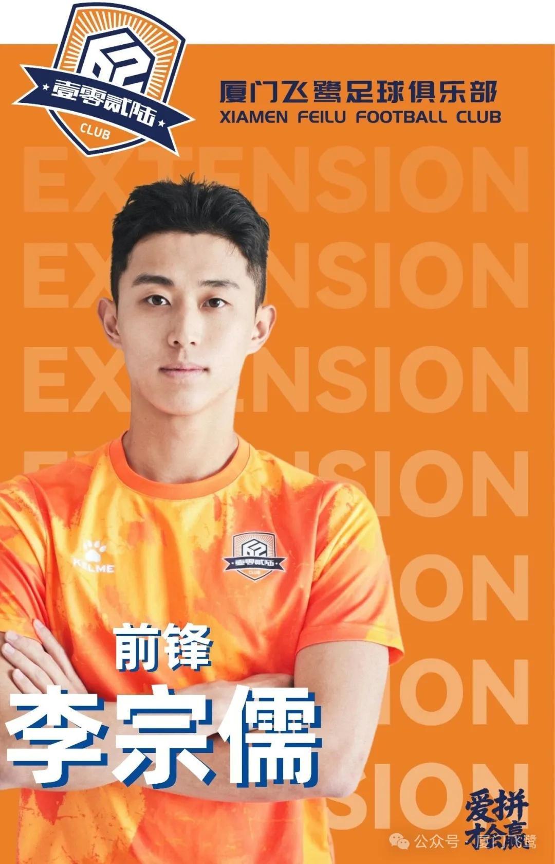 经俱乐部与李宗儒友好协商,现正式宣布,李宗儒将在2026赛季继续为厦门飞鹭足球俱乐部效力,双方已签署续约协议。