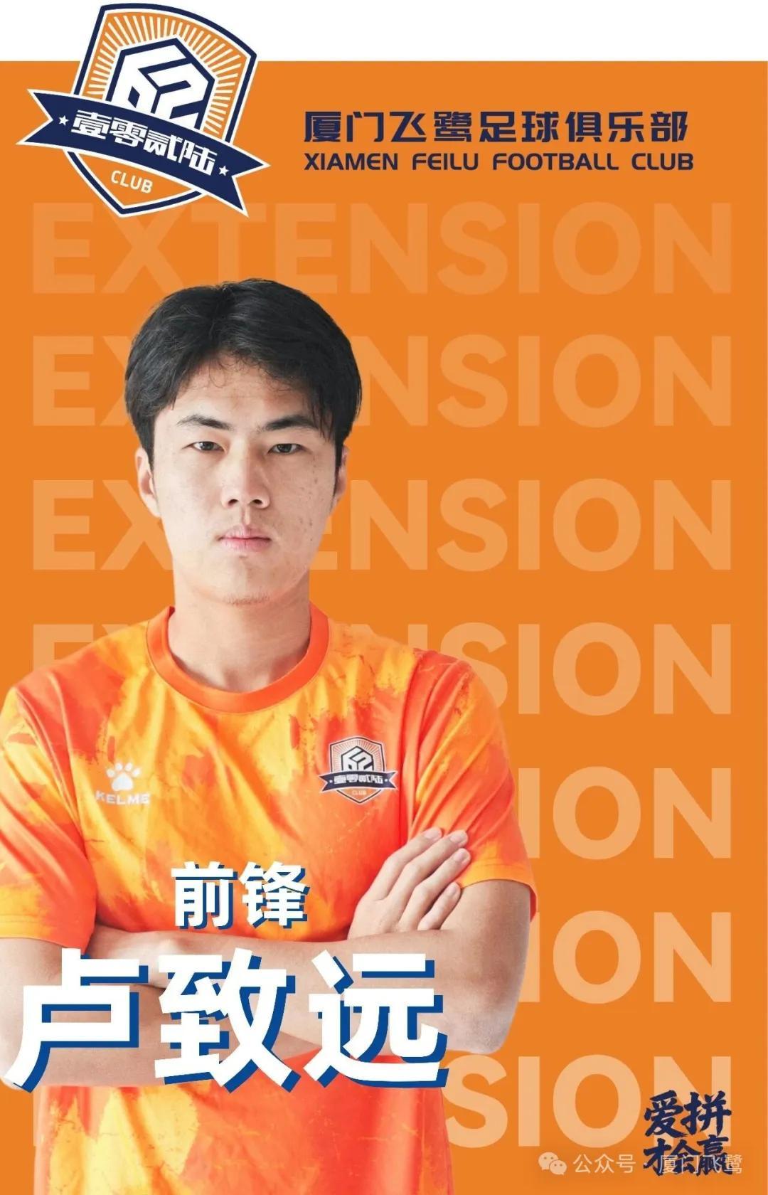 经俱乐部与卢致远友好协商,现正式宣布,卢致远将在2026赛季继续为厦门飞鹭足球俱乐部效力,双方已签署续约协议。